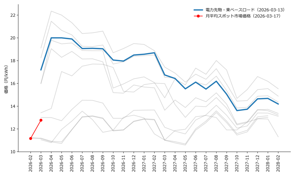 同時に、東京ベースロード先物市場では、3月以降の価格がすでに比較的高い水準で形成されていました。