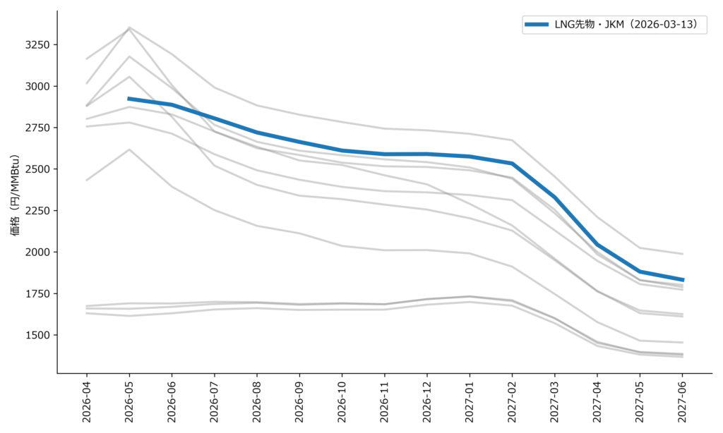 背景にあるのは、LNGなど燃料価格の上昇、需給の引き締まり、またそれらを踏まえた市場参加者の価格見通しの修正です。